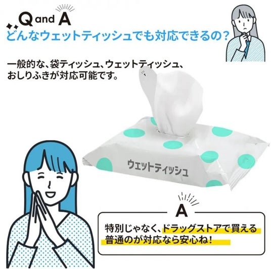 幅93mm、高さ70mm、奥行140mm以内の大きさのウェットティッシュに対応
