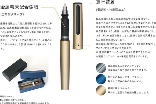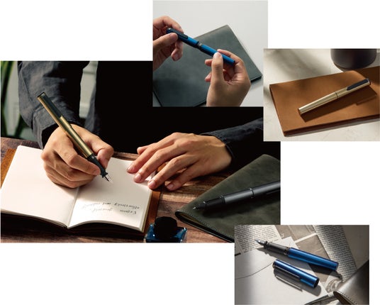 「万年筆を正しい向きで持つ」のではなく「万年筆が正しい向きになってくれる」機能を搭載した万年筆と、同じデザインで合わせて持てるボールペンをラインアップ。