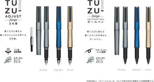 TUZU シリーズに、金属のような光沢感が美しい加飾モデルが登場 『TUZU アジャストフォージ 万年筆』『TUZU フォージ ボールペン』