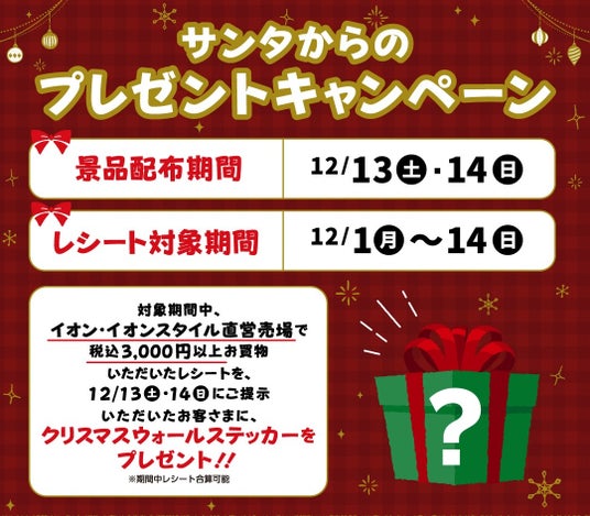 来てあたたか、過ごして楽しい“WARM”な空間として、「イオン」「イオンスタイル」「イオンモール」の店舗で過ごすライフスタイルを提案します。お買物だけではなく、イベントや食事など、一日中館内で楽しくあたたかく過ごせる環境を用意しています。さらに、「イオン」「イオンスタイル」の店舗では、クリスマスや初売りなどで催事企画を実施します。