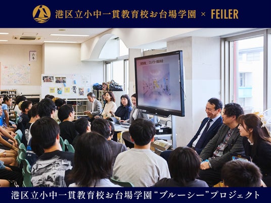フェイラージャパン株式会社(本社:東京都渋谷区、代表取締役社長:八木直久)は、お台場の海のすぐそばに位置する港区立小中一貫教育校お台場学園の海に関する学習や特色ある学習をとおして子ども達が得た「海の環境を守る大切さ」を発信したい、という想いに共感し、小学6年生と共創し、「FEILER(フェイラー)」のハンカチをとおして「海の環境を守る大切さ」を発信する“ブルーシー”プロジェクトを実施いたしました。