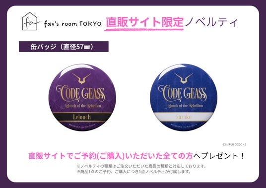 fav’s room TOKYO公式通販サイトからご予約・ご購入いただいた方限定で、缶バッジ(直径57mm)をプレゼントいたします。