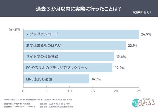 過去3か月以内に実際に行った行動では、アプリダウンロード(24.9%)が最多でした。