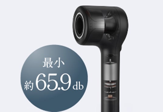 独自の内部風道構造による“静音エアダクト設計”で、動作音を最小約65.9dBに抑え、夜間や家族のそばでも快適に使用できます。