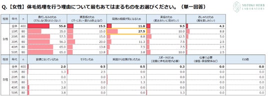 株式会社 鈴木ハーブ研究所~ 10代女性の4人に1人は「周囲の視線が気になって」体毛を処理 ~