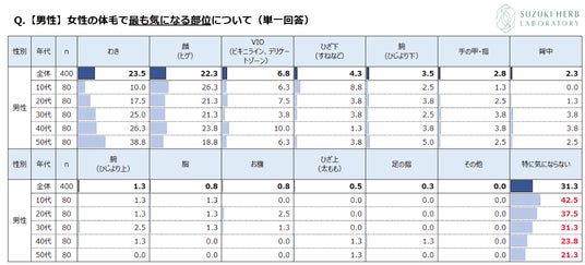10代~50代男女800名調査 異性の“毛が気になる部位”女性は男性の「わき」より「胸」、若い男性ほど「特に気にならない」