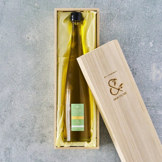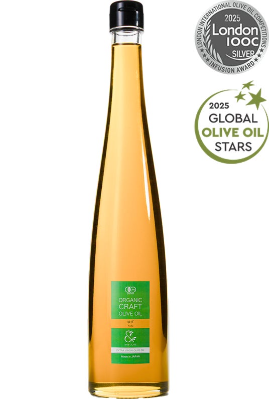 群馬産有機オリーブと栃木県市貝町産の柚子をコールドプレスで搾油したオリーブオイルです。2025年5月にLIOOC(ロンドン国際オリーブオイルアワード)のインフューズドオリーブオイル部門で銀賞を受賞した製品と同じ製法で生産したオリーブオイルを500本限定で美しいボトルに封入し、数量限定生産の証としてシリアルナンバー(製造ロットナンバー)が刻印された桐箱に納めてお届けします。