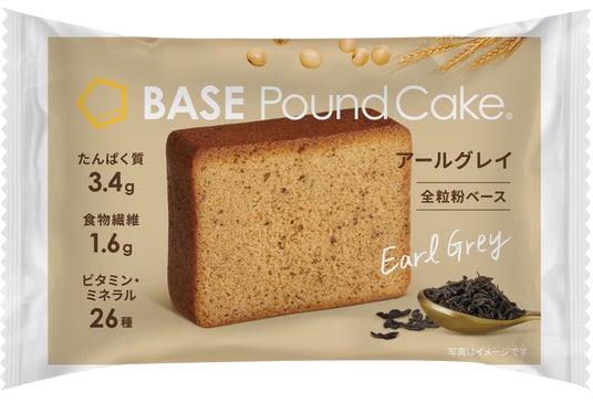シリーズ第一弾となる「BASE Pound Cake アールグレイ」は、濃縮された紅茶エキスとスリランカ産の茶葉を使用し、アールグレイの上品な香りと甘みをお楽しみいただける商品です。