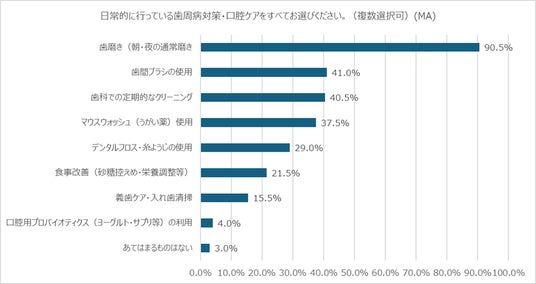 3.歯周病対策の実施方法は「歯磨き・フロス」が圧倒的多数