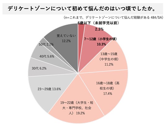 若い世代ほど悩み始めた時期が早い傾向にあり、20代はなんと4人に1人が「小学生以下」からデリケートゾーンについて悩んだと回答しました。