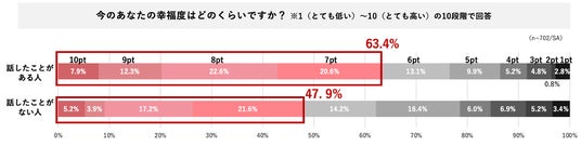 デリケートゾーンの悩みを周囲に「話したことがある」人は、「話したことがない」人に比べて、幸福度が高い割合が約1.3倍にのぼる結果に