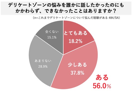 - 全体の半数以上が、デリケートゾーンの悩みを誰かに話したかったにも関わらず話せなかったと回答。