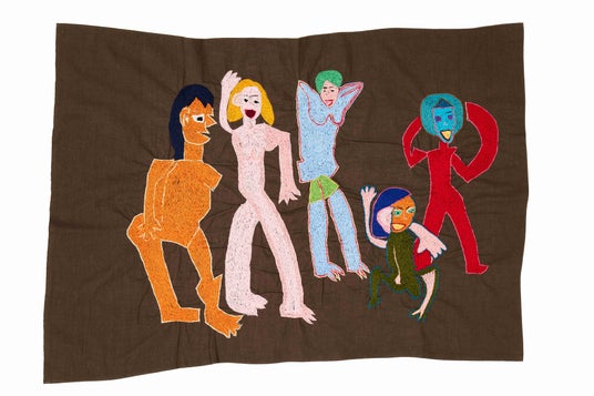 タイトル : すっぽん祭り(Naked festival)/ 2010 / 綿刺繍糸、綿布(Embroidery Thread, Cotton cloth)
