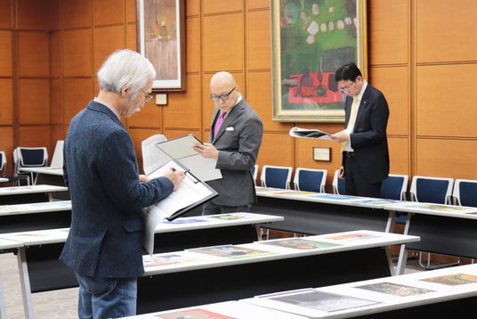 応募いただいた2,300点以上の作品から、柴崎春通氏による審査のもと、展示作品100点を選出し、柴崎春通氏、山田五郎氏、ぺんてる代表取締役社長の石垣淳一による審査のもと、展示作品100点の中から審査員賞10点を選出しました。選出作品は、AWRD特設サイト上で公開しています。