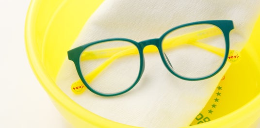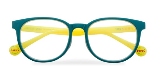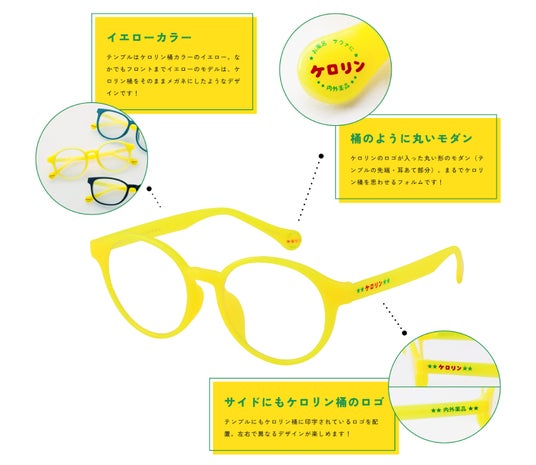 テンプルはケロリン桶カラーのイエロー。なかでもフロントまでイエローのモデルは、ケロリン桶をそのままメガネにしたようなデザインです!