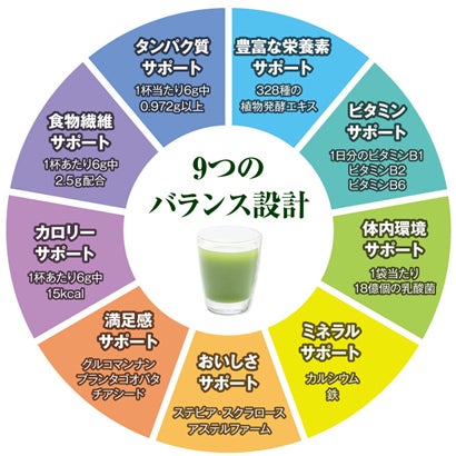 1杯9つの栄養バランス設計を実現し、ダイエット中でも、しっかりとした栄養補給を可能にします。