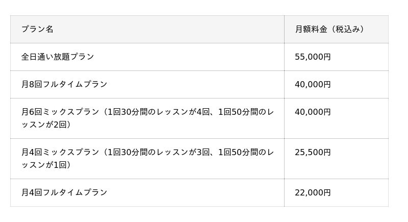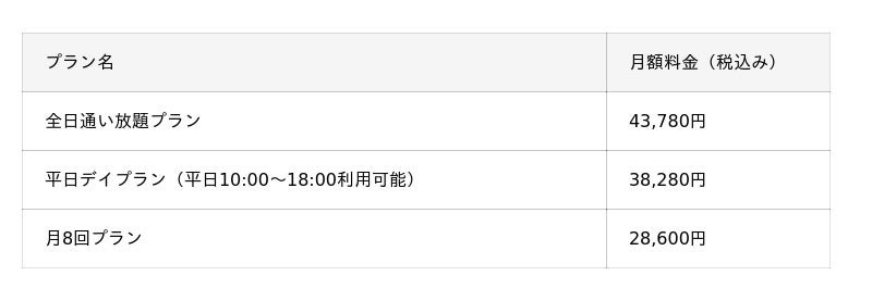 <マシンピラティス料金プラン>