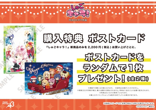 『しゅごキャラ!』新商品のみを1会計2,200円(税込)お買い上げごとに、購入特典としてポストカード(全2種)をランダムで1枚プレゼント。