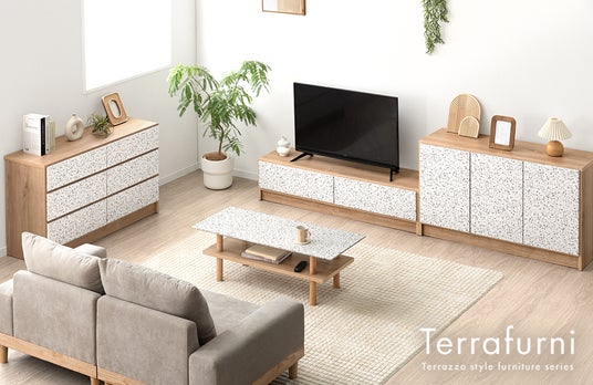 いま再注目を集めるトレンドデザイン“テラゾー柄”を取り入れたナチュラルモダンな家具シリーズ“Terrafurni (テラファニ)”登場