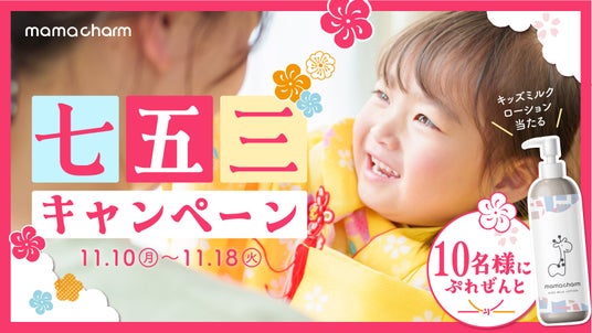 お子さまの七五三の写真はもちろん、日常の小さな成長エピソードも大歓迎。投稿してくださった方の中から抽選で、ママチャームの人気商品「キッズミルクローション」をプレゼントいたします。