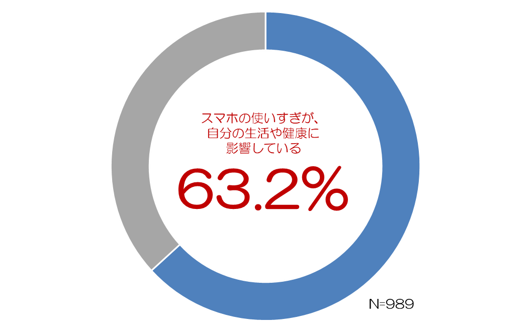 スマホの使いすぎが自分の生活や健康に影響していると感じる人が63.2%