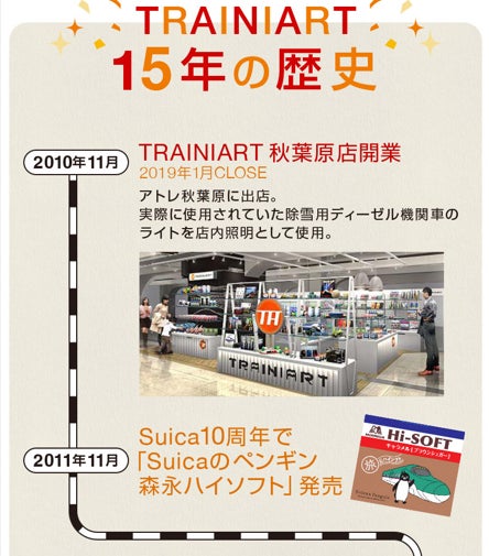 JRE MALL内の特設ページでは、TRAINIARTの歩みを年表形式にてご紹介しておりますので、ぜひご覧ください。