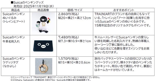 15周年を記念した「Suicaのペンギン ぬいぐるみ(トレインとアート)」を11月19日より、発売いたします。
