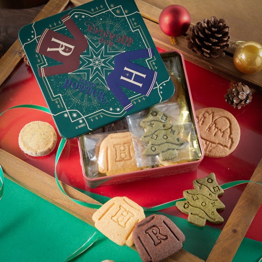 映画『ハリー・ポッターと賢者の石』で、ロンの母モリー・ウィーズリーがハリーとロンへ贈ったセーターをはじめ、作中に登場するさまざまなモチーフをクッキーにしたアソート缶です。冬を意識したかわいらしい見た目はもちろん、シナモンや紅茶など豊富なフレーバーはホリデーシーズンのティータイムにぴったり。