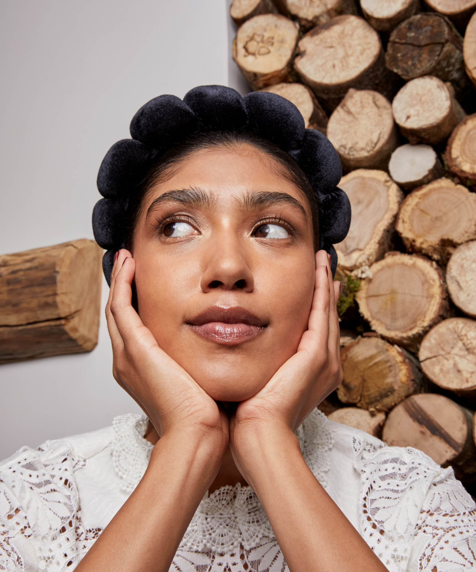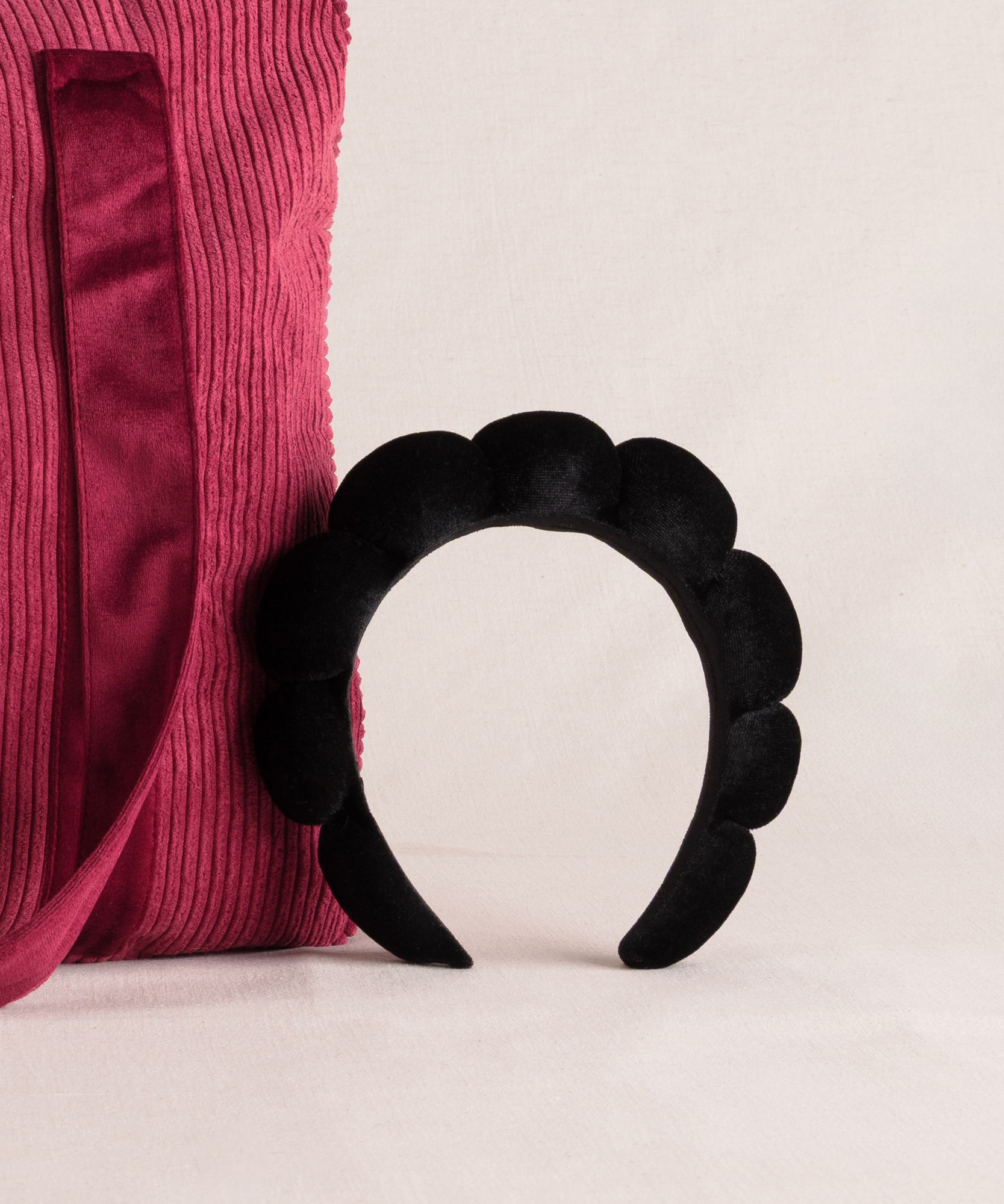 ベルベットでシックなブラックのヘッドバンドは、このまま外に出かけたくなるほど。旅行先のガールズナイトなどでも大活躍。こだわりのルームウェアとぜひあわせて使ってみて。ホリデーシーズンを楽しむ準備は、このヘッドバンドがあれば心強いはず。
