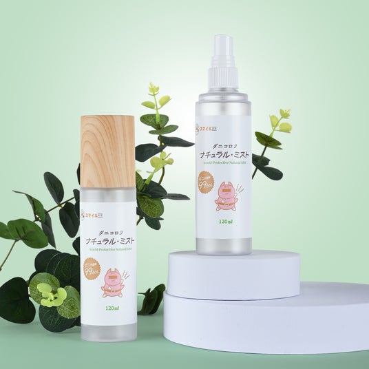洋服やぬいぐるみなど、従来ダニ対策が難しかった場所にも使える忌避スプレー。殺虫成分や化学成分は不使用で、ユーカリやレモングラスなどの天然由来成分を配合しております。