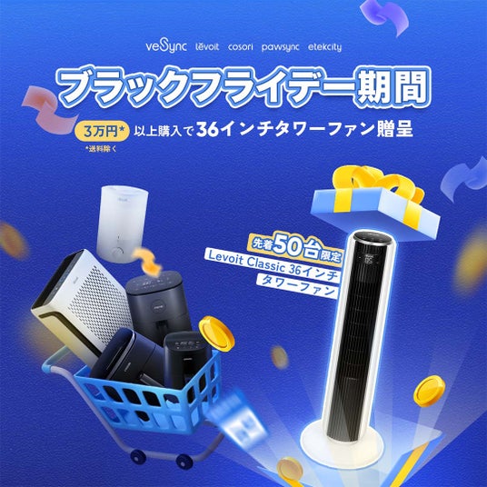 アメリカ発の小型家電メーカーVeSync(ウィーシンク)の日本法人、Vesync Japan株式会社(本社:東京都千代田区、以下VeSync)は、2025年11月14日(金)より「VeSyncブラックフライデー2025」の事前予約キャンペーンを開始しました。