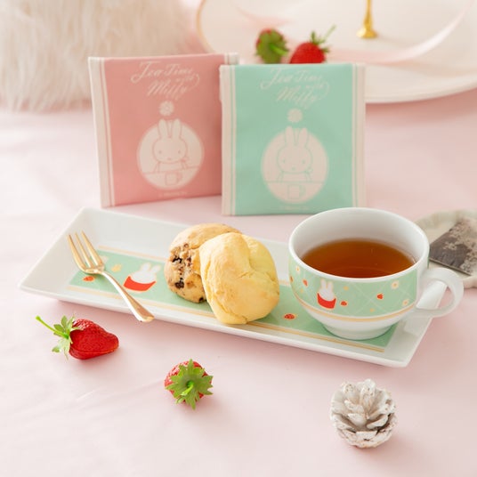 人気絵本ミッフィーのお花屋さん「フラワーミッフィー」にて、2025年11月21日(金)よりストロベリーや白い小花をあしらった4種の食器類とティーバッグのパッケージイメージのポーチが新登場