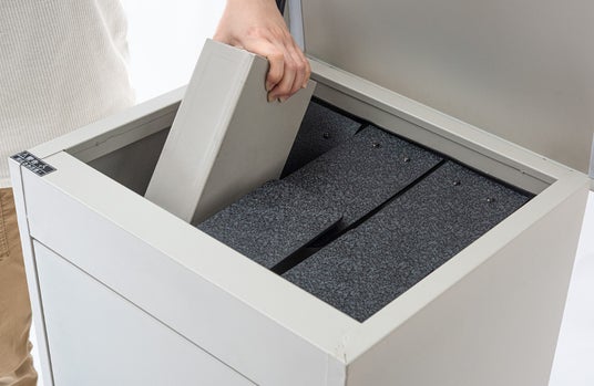 また、本製品は「スリット窓」から荷物の有無を簡単に確認ができるようになりました。外出時や帰宅時など宅配ボックスの前を通った時に目視で中身をさっとチェックできるので、定期便などの荷物の取り忘れを防ぐことができます。すりガラス調の窓になっているため、中に入っている荷物がはっきりと見えることはないので、プライバシーの面でも安心して使うことが可能です。