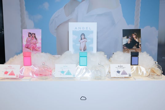 続いて、商品ごとの説明が行われた。BLUEは「サイダー漬けにされた天使が自分の前をすごいスピードで走り去っていくような香り。爆走感があるので、誰にも流されない。『人に流されているな』って思う人につけてほしいです」と解説し、PINKは「ピンク色のユニコーンが目の前まで走ってきて、キラーンってモデルポーズを取ったあとに変顔をしてびゅーんって去っていくような香り。嫌いな人は嫌いだけど、1回嗅ぐと頭からも体からも離れないです。すごくクセがあって目立つので、カリスマ性が感じられると思います。オーディションやかましたい会議、合コンなどにつけていくといいです」と独特な表現。BLACKは、時間が経つにつれて香りが変化するように開発したそうで「つけたては優しい香りなのに、夕方くらいには女豹が出てきます。大人っぽい色気のある香りに仕上げました。ガオーって感じを出すためにスタッフさんとディスカッションして、なんとか原料の香りを上げてもらって完成させました」と開発秘話を口にした。