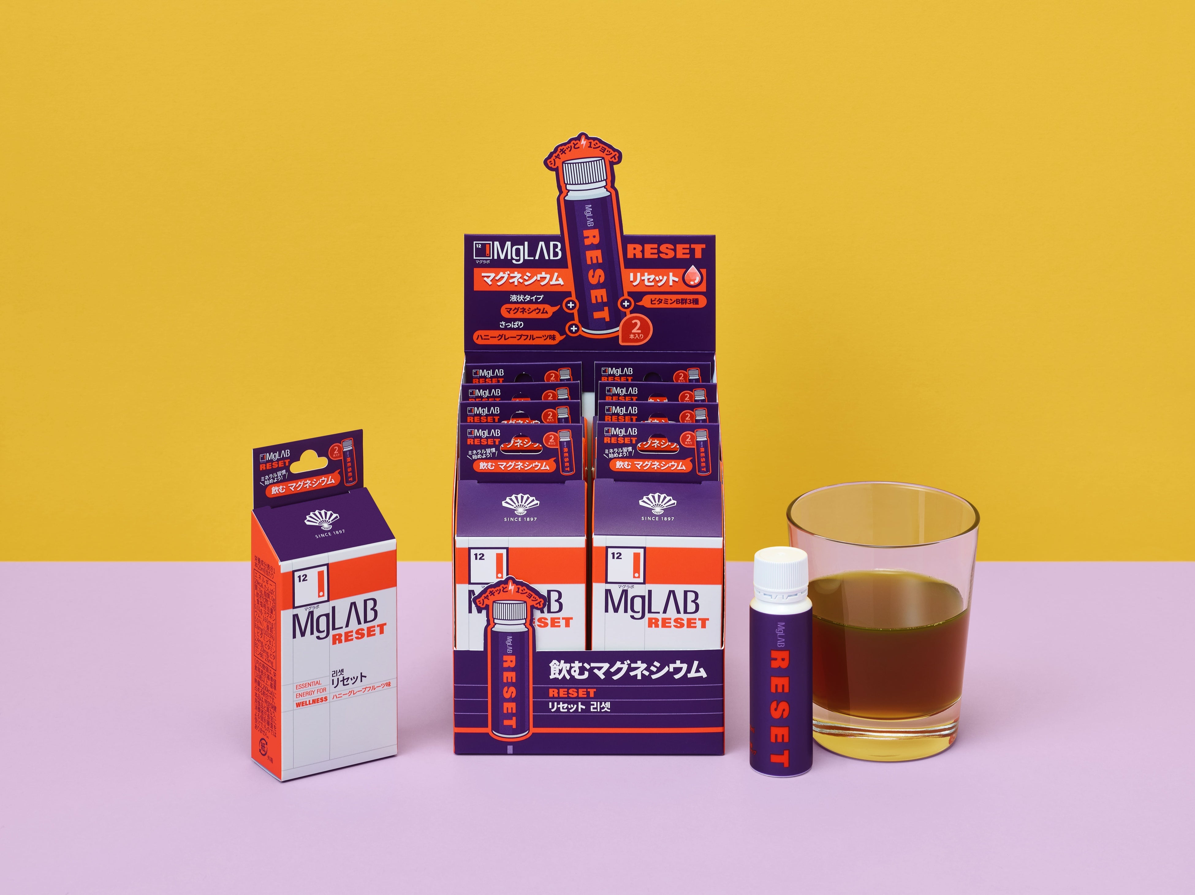 【MgLAB RESET】お休み前や休憩時間のリフレッシュにおすすめの1本。日中の緊張や集中が続いた体を落ち着かせたいシーンにも取り入れやすいようマグネシウムを160mgと多めに配合しました。さらに、ビタミンB1・B2・B6と亜鉛をバランスよく配合。吸収率に優れた液体タイプで、スッキリとしたハニーグレープフルーツ味。おいしくリフレッシュしながら、体の内側からエネルギーをチャージ。