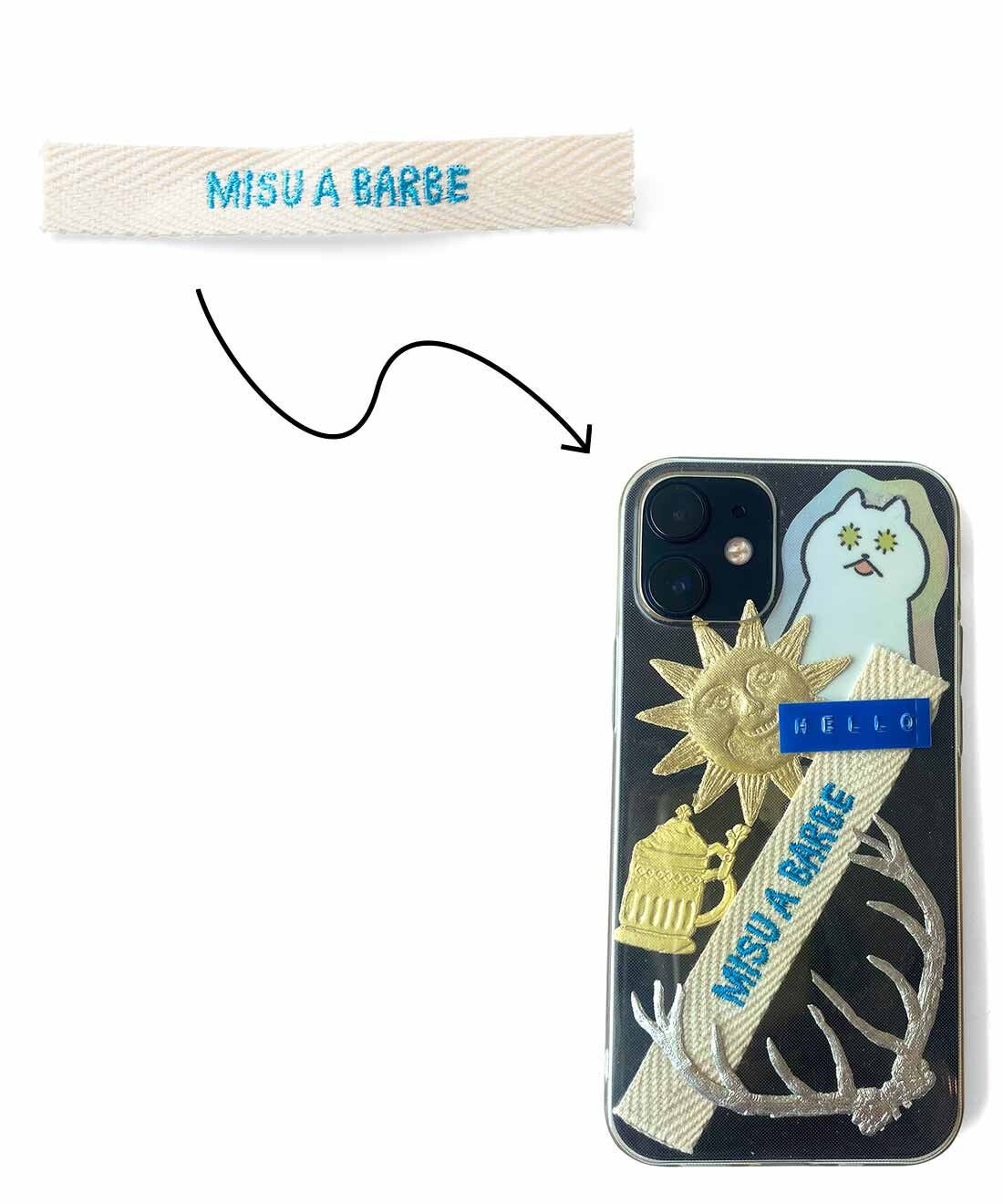 どのデザインにも、MISU A BARBEのロゴ刺しゅうタグが付いています。自分のイニシャルを刺しゅうで足して、オリジナルタグにしても◎。スマホケースに入れてもかわいい。