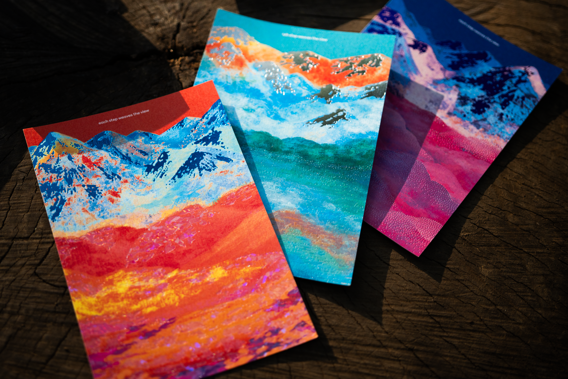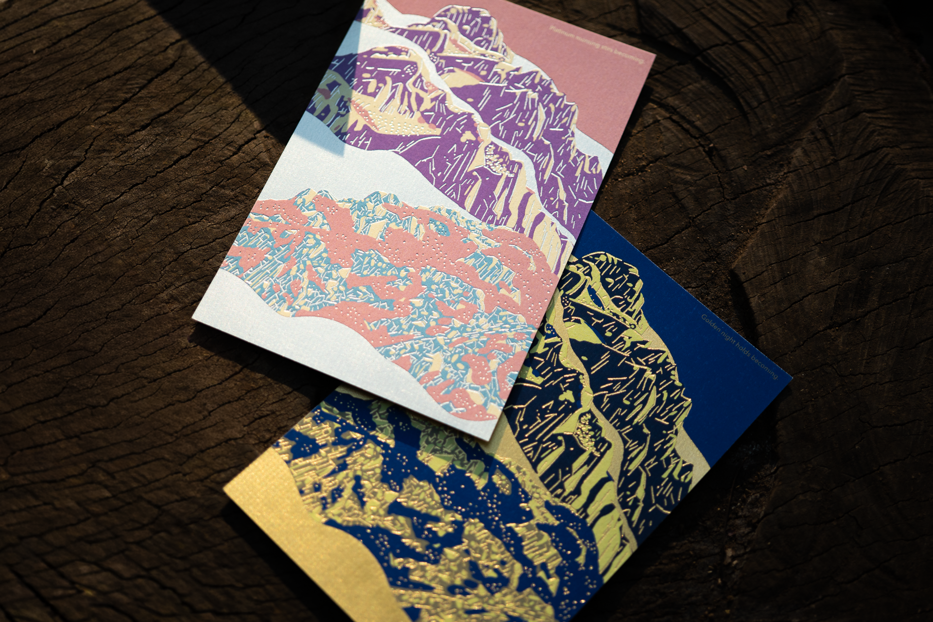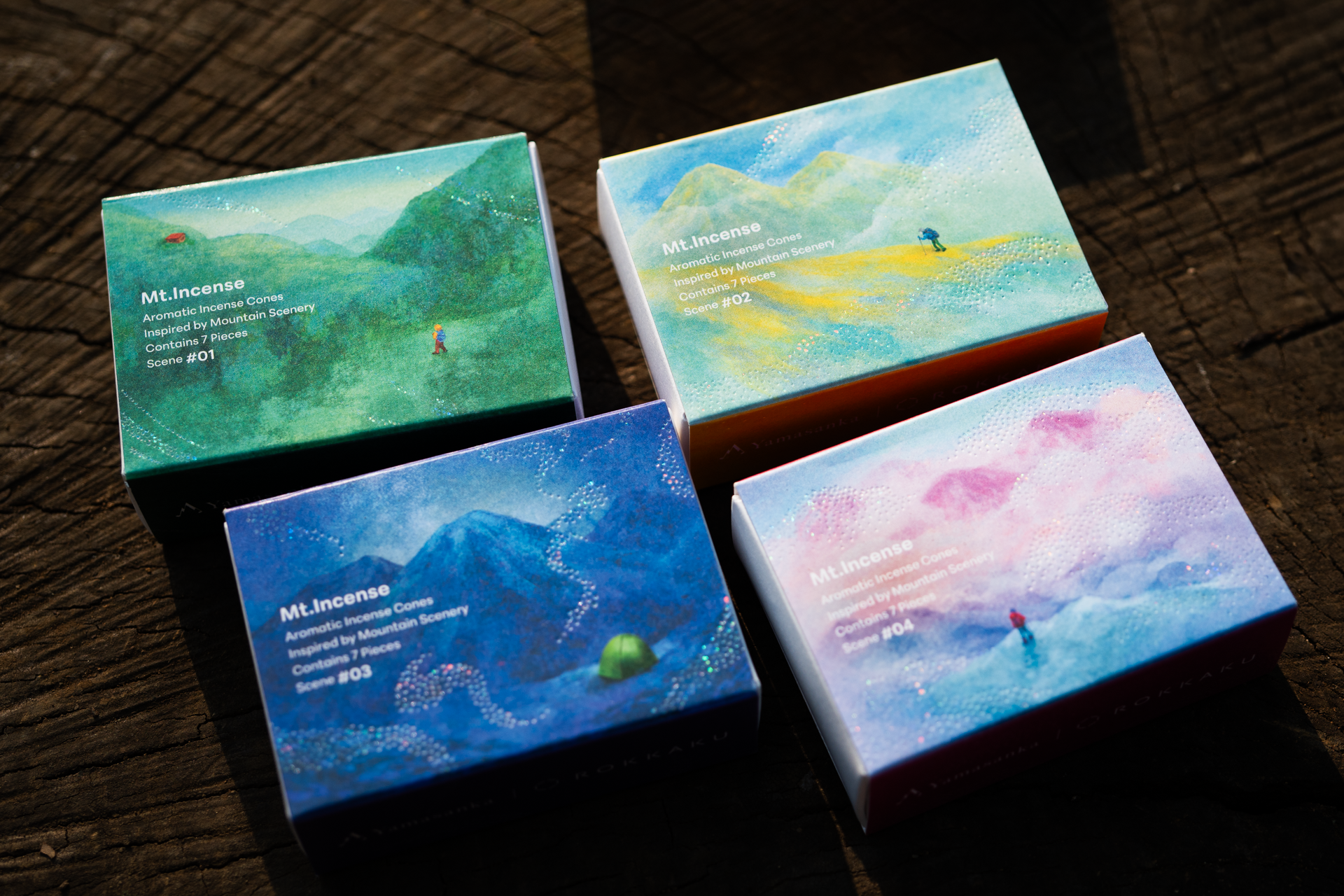 箔押しブランド「ROKKAKU」と、山の魅力を発信する「Yamasanka」による初のコラボレーションが実現。いつでもどこでも、山の美しさや香りを感じられる〈ポストカード〉〈しおり〉〈ノート〉〈メッセージカード〉〈お香〉の5商品が誕生しました。