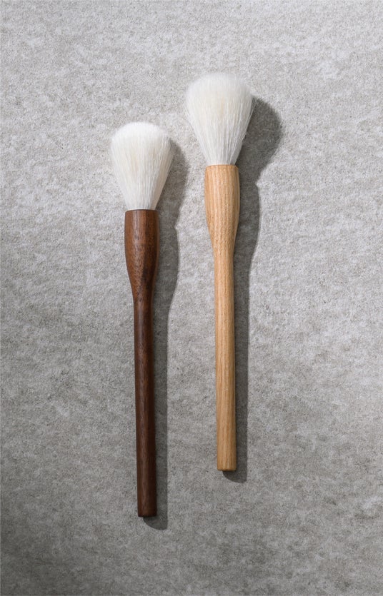 肌あたりのやわらかな山羊毛を使用。防カビ・撥水加工を施した衛生的なペンシル型ハンドルは、操作性が高く、小回りのきくサイズで、小鼻・耳まわりなど 細かな部分の使用にもおすすめです。