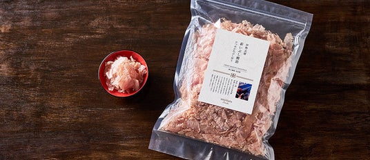 伝統的な手法により味わいを深めた上質な本枯節の中でも、血合いの部分を除き、繊細な花弁のように削り上げました。