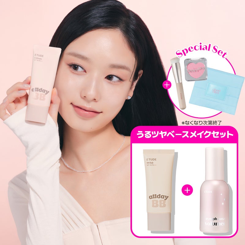 エチュード代表アイテム「カールフィックスマスカラ」から誕生した新ライン『カールフィックスマスカラ スキニー』の先行発売や、恋をテーマにした生すふれリップ『ソフトフィクシングティント』と美少女EYEを叶える『ぽよんアイメイカー』のお得なセット。さらにツヤ肌が爆誕*するとSNSでも話題の「ニンフオーラボリューマ―」のセットなど魅力的なアイテムが盛りだくさん!