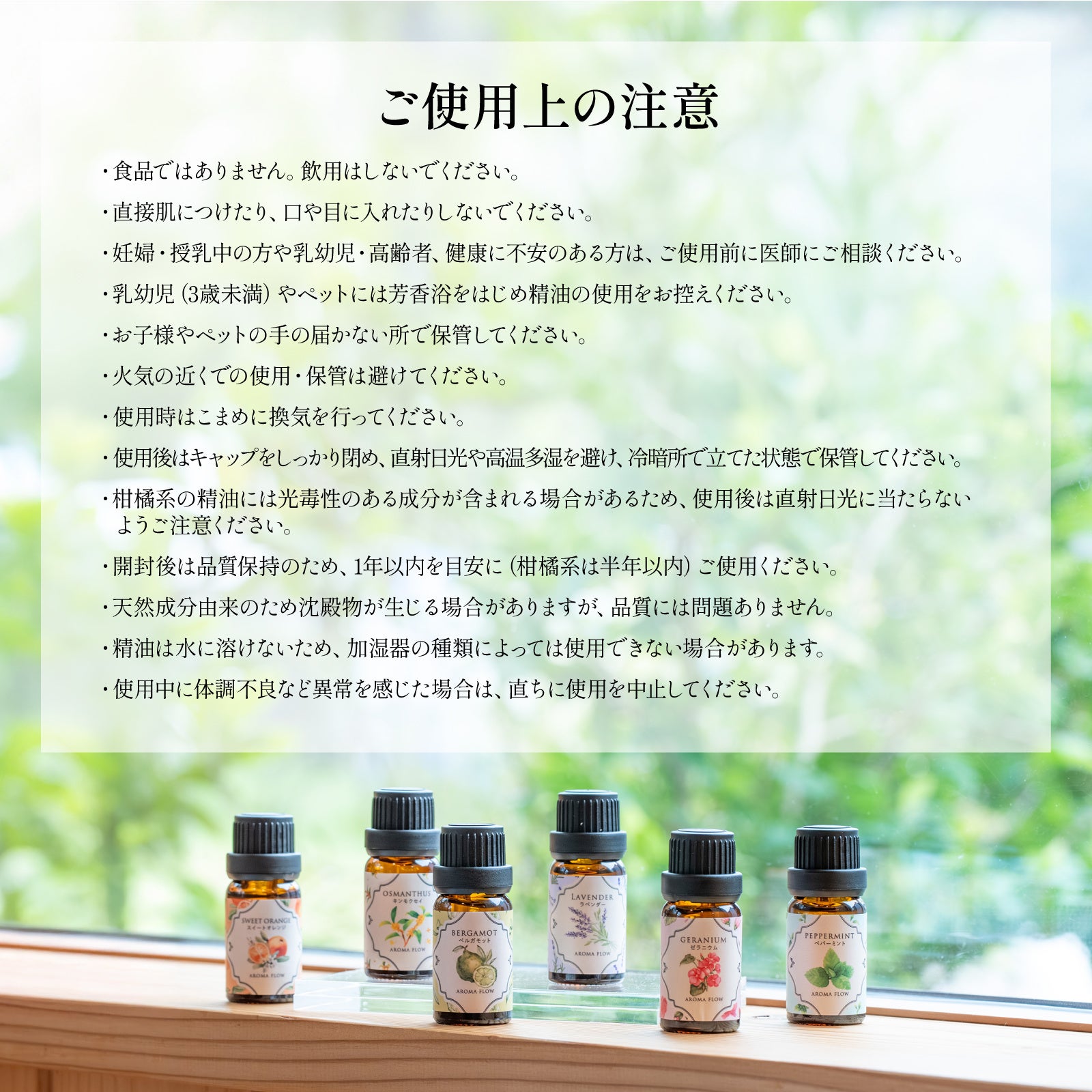 植物の花・葉・果皮・樹皮などから抽出したピュアなアロマオイルで、合成香料不使用・安心の10mlサイズ。指定農園から直接届けられる天然素材のみを使用し、自然の香りが穏やかに広がり、消えていく心地よさを実現しました。