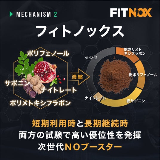 フィトノックスは3種の植物に含まれる有用なフィトケミカルを、人体が取り込むのに適した形に加工する「PNSテクノロジー」で加工した先端NO系素材です。