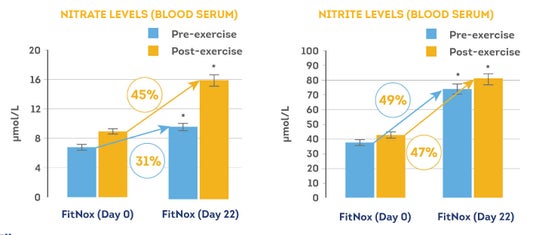 研究では250mgのフィトノックスを22日間継続摂取させたことで、安静時のNOレベルが最大49%も向上したことが確認されています。