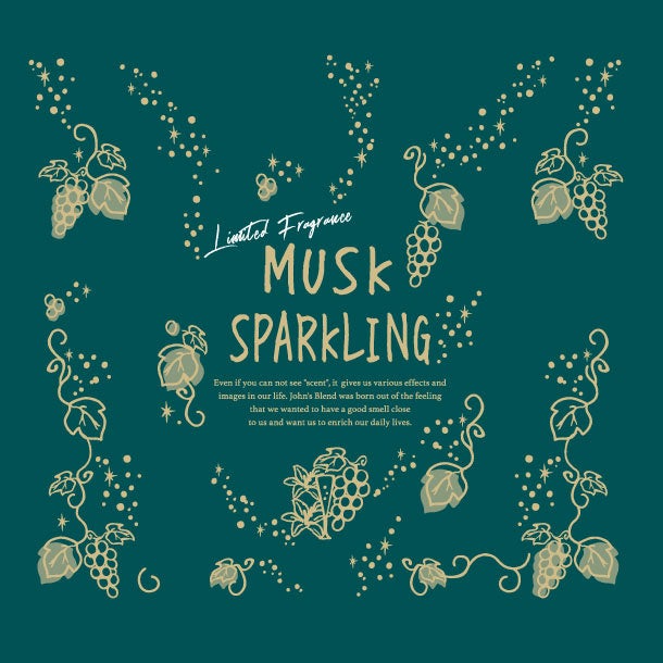 この冬限定の香り「ムスクスパークリング」は、芳醇な白ぶどうと爽やかなムスクが織りなすフルーティな香りです。