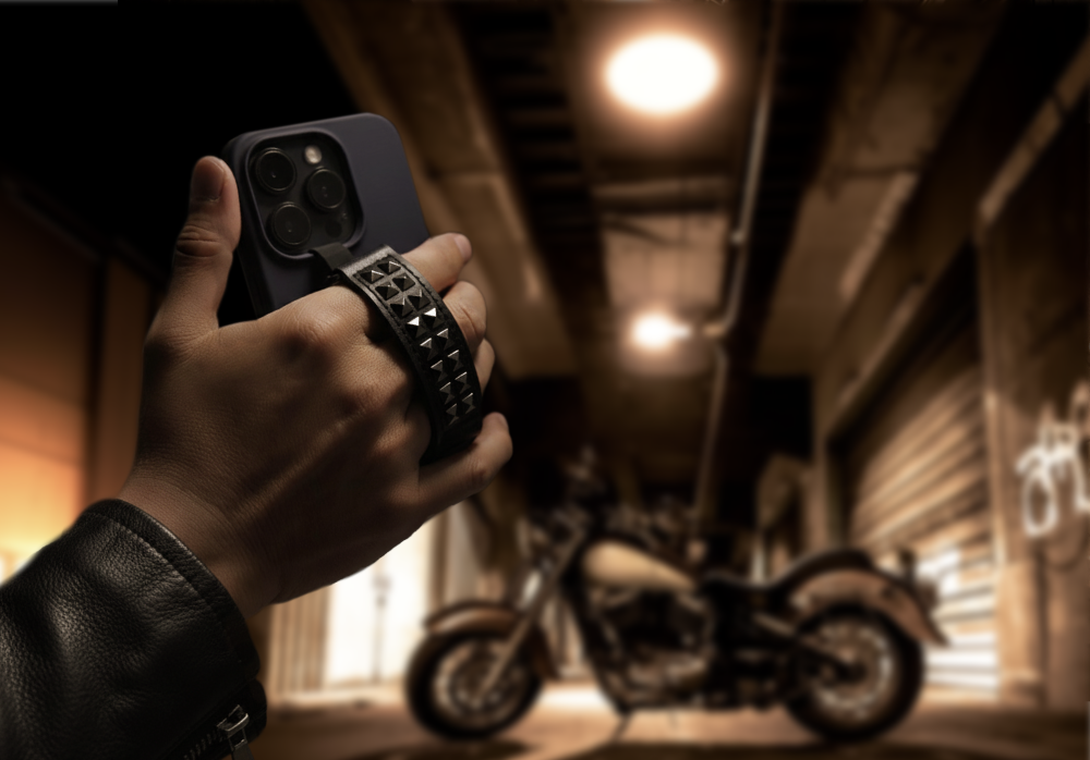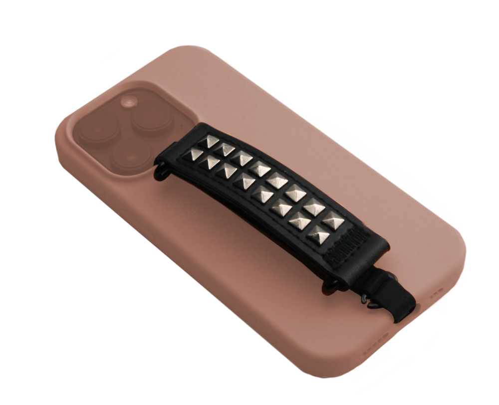 「hammock'n Rock」は、機能だけでは終わらない“魅せるスマホバンド”。手に馴染むシリコンの快適性はそのままに、16個のスタッズが光と陰を奏で、存在感を放ちます。