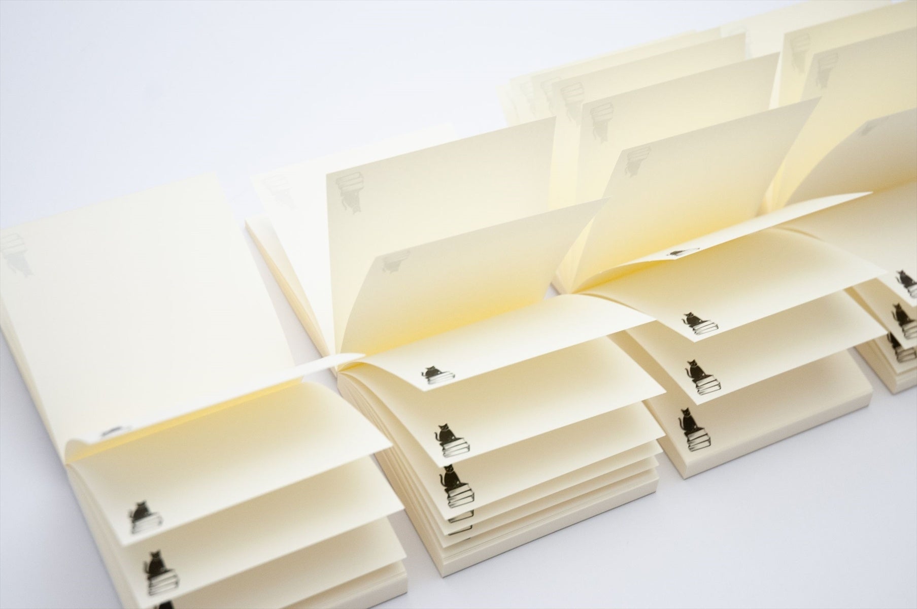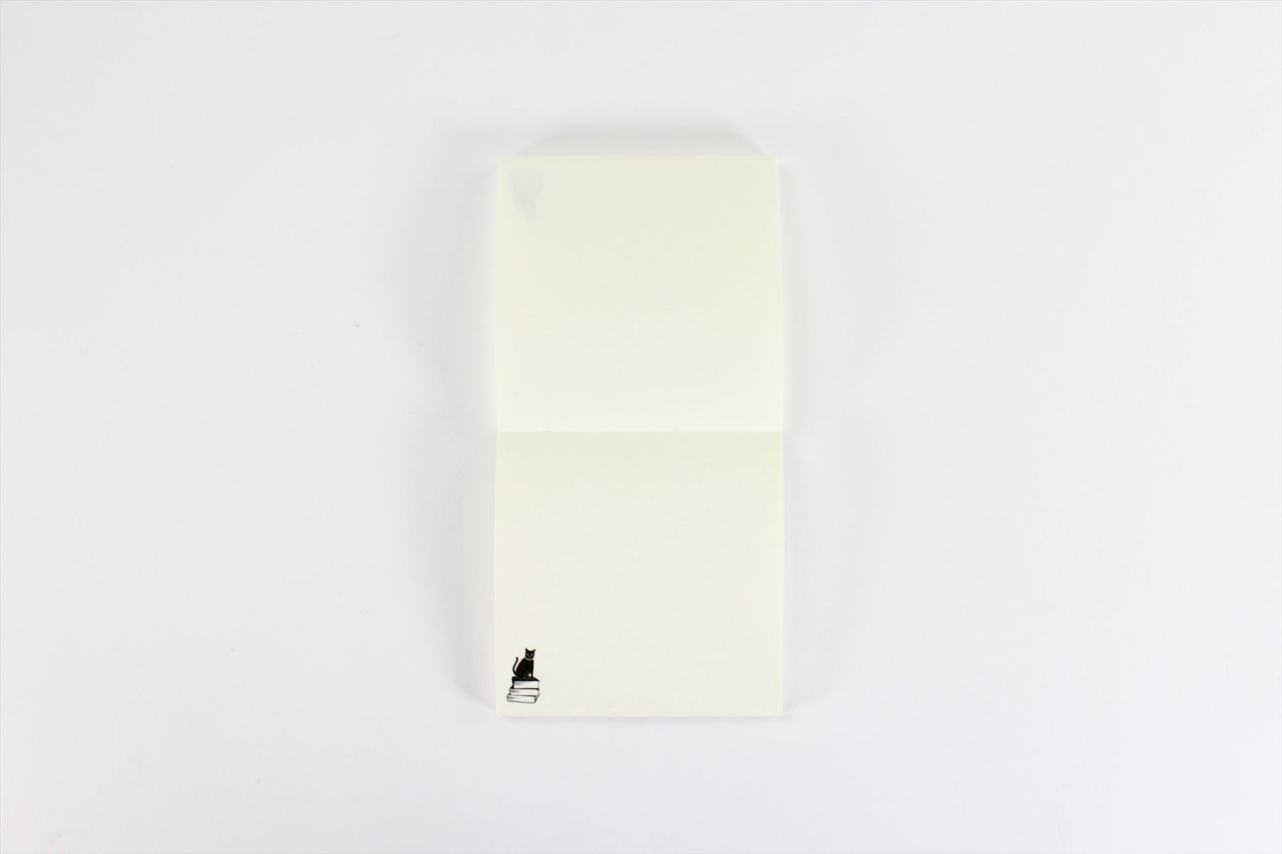 一枚一枚、国内の職人が丁寧に仕上げた品質は、文房具好きにも本好きにも満足いただける仕上がり。本文にはBIBLIOPHILICの象徴である“猫と本”のワンポイントが印刷され、手元に置いておくだけで心が弾むデザインです。切り取ったメモは、本に挟んで栞代わりにも使える実用性も魅力。