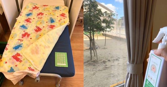 筑後市立筑後保育所での使用様子(左:ダニコロリ 右:ダニコロリ・アレルフリー)