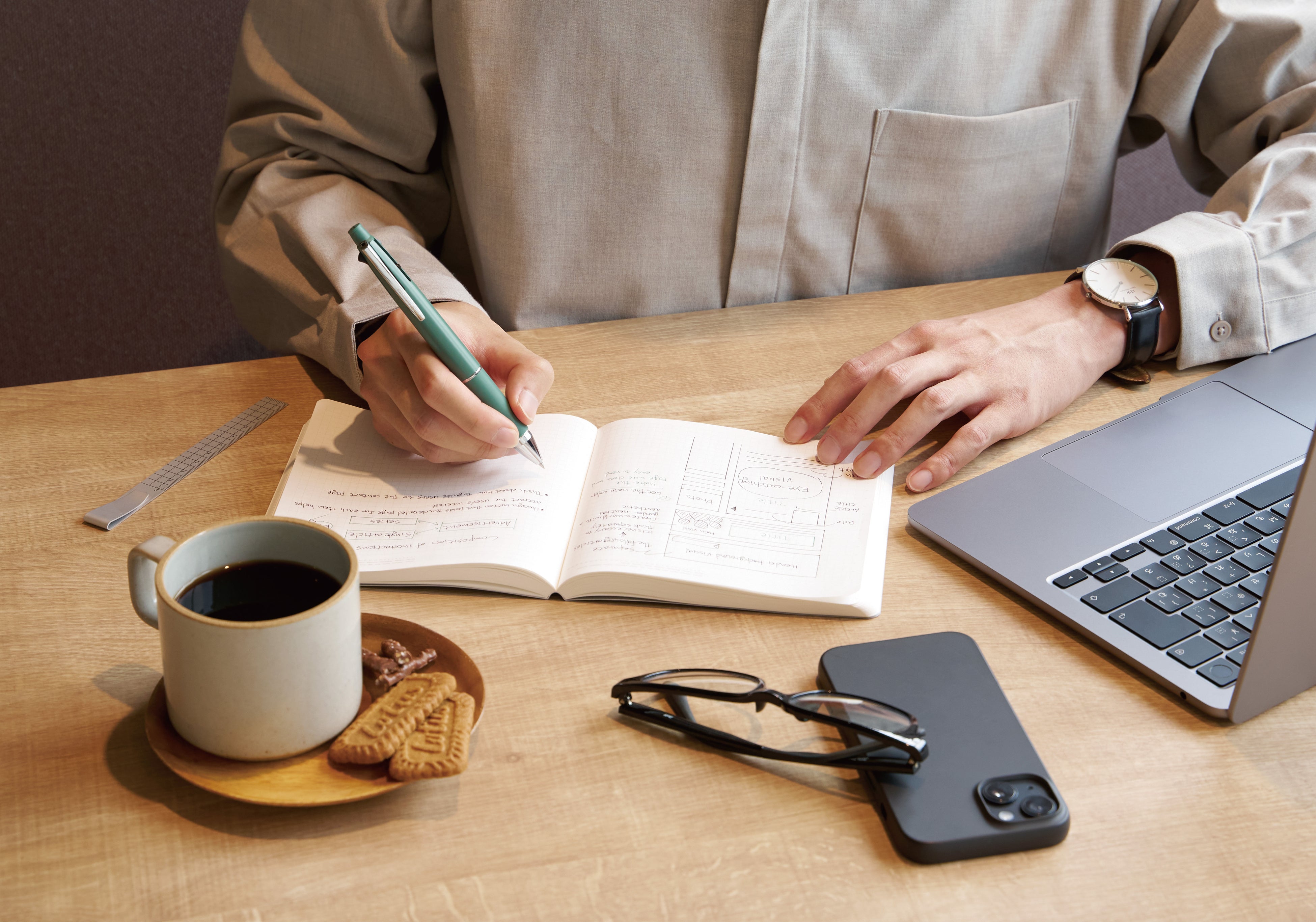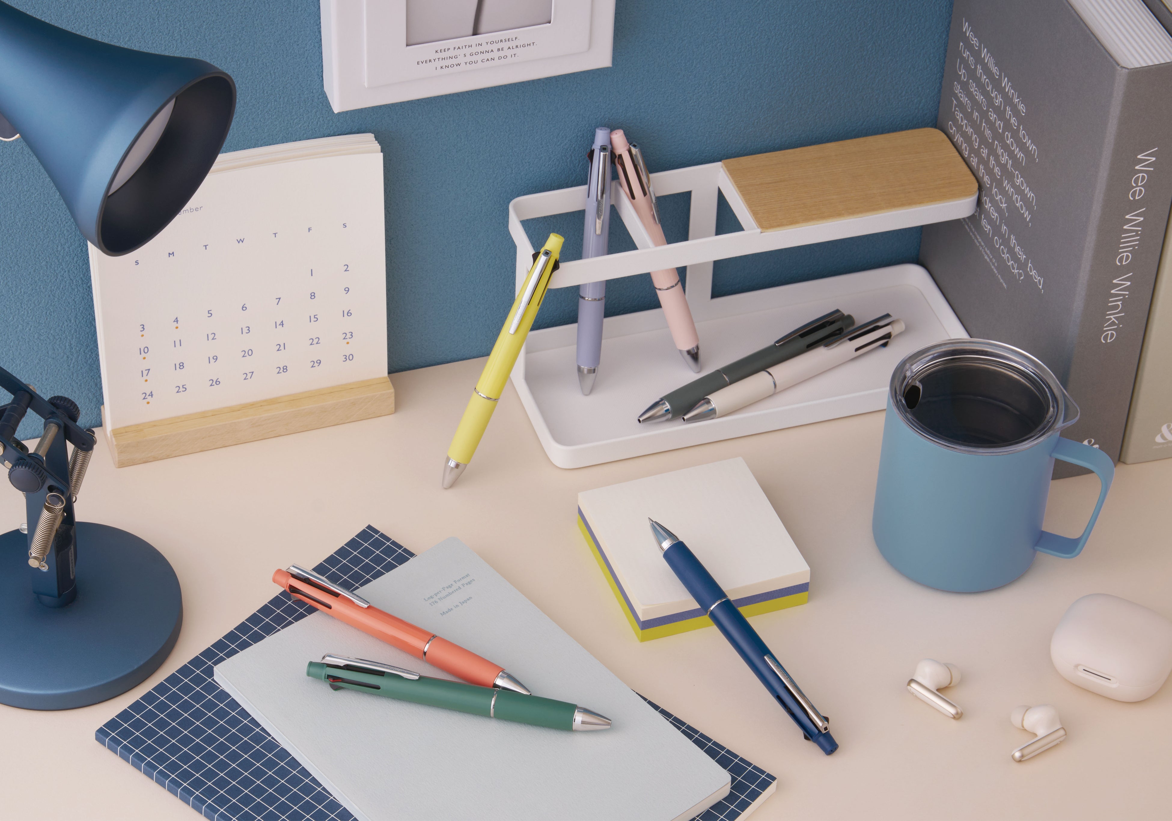 今回は時代やニーズの変化に合わせた新軸色を追加し、リニューアルしてまいります。従来ははっきりとした色合いや光沢のあるボディに黒いグリップを搭載したものをベースに、かっちりとした印象のあるラインアップとしておりました。近年では働き方の多様化や、テレワークといった働く環境の変化によって、「仕事や作業中に使用していると気分が上がる」ものや、「自身の服装に自然に合わせられる」ものへのニーズが高まってきています。これまでご愛顧いただいているブラック、ネイビーといった従来のトーンのラインアップに加えて、よりさまざまなシーンで、さまざまな方に使っていただきやすいように、ボディの濃淡や光沢の有無、グリップのカラー展開など、選べる幅を豊富に取りそろえたラインアップにしてまいります。