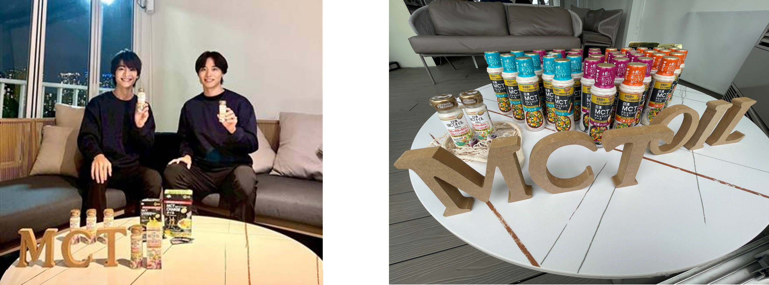 「日清MCTオイル」を紹介する、溝口琢矢さん、太田将熙さん 当社商品が当たるイベントを実施