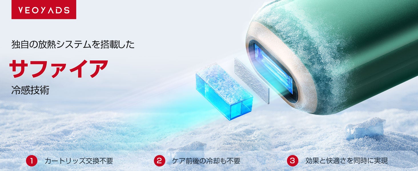 Veoyadsはこうした悩みに向き合い、「脱毛の常識を変える」ことを目指して サファイア冷却技術 を採用した最新モデルを開発。
